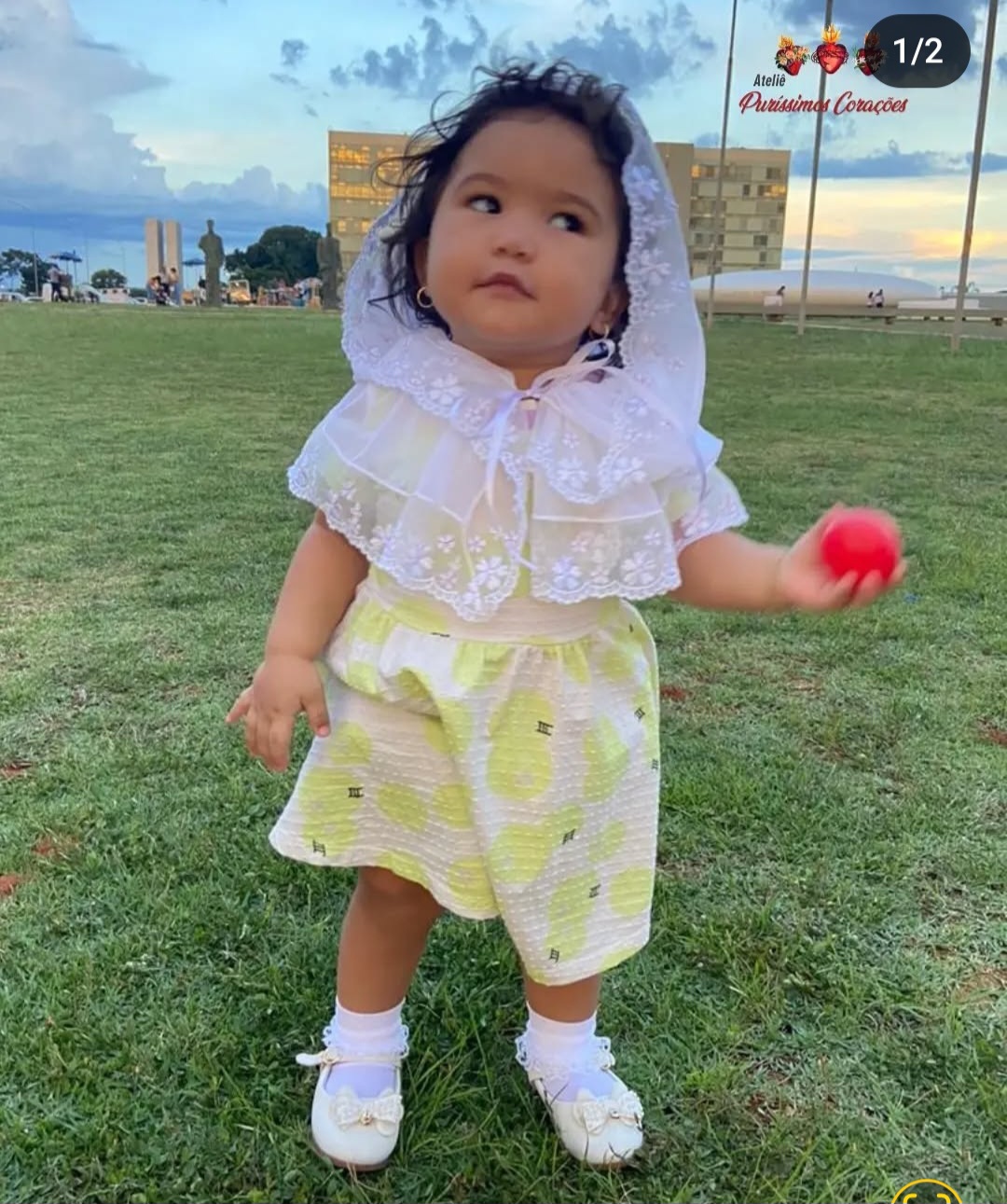 Véu Infantil no modelo capuz, confeccionado em Tule de malha e aplicação em tule bordado.