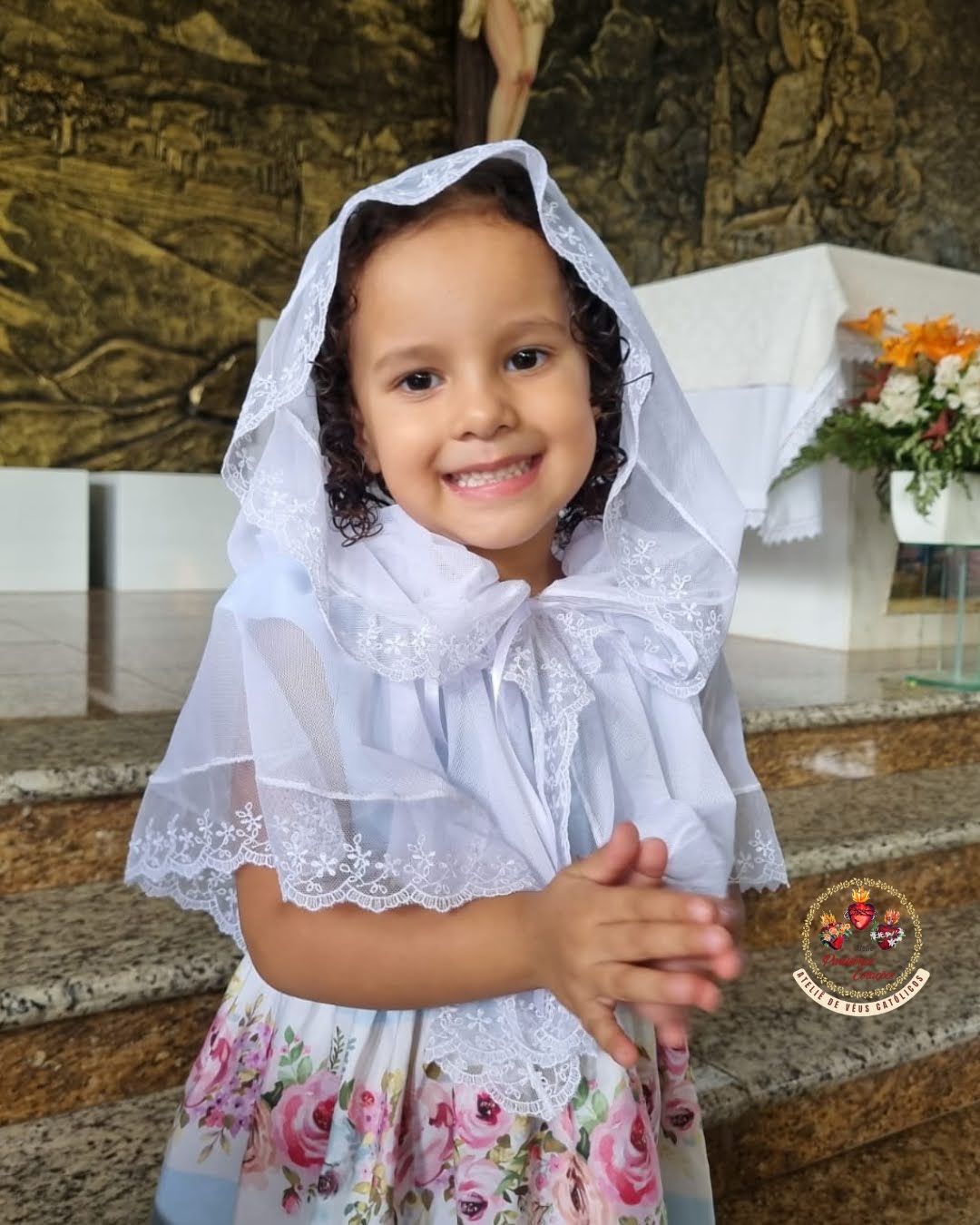 Véu católico, modelo capuz, confeccionado em Tule de malha e acabamento em gripir.