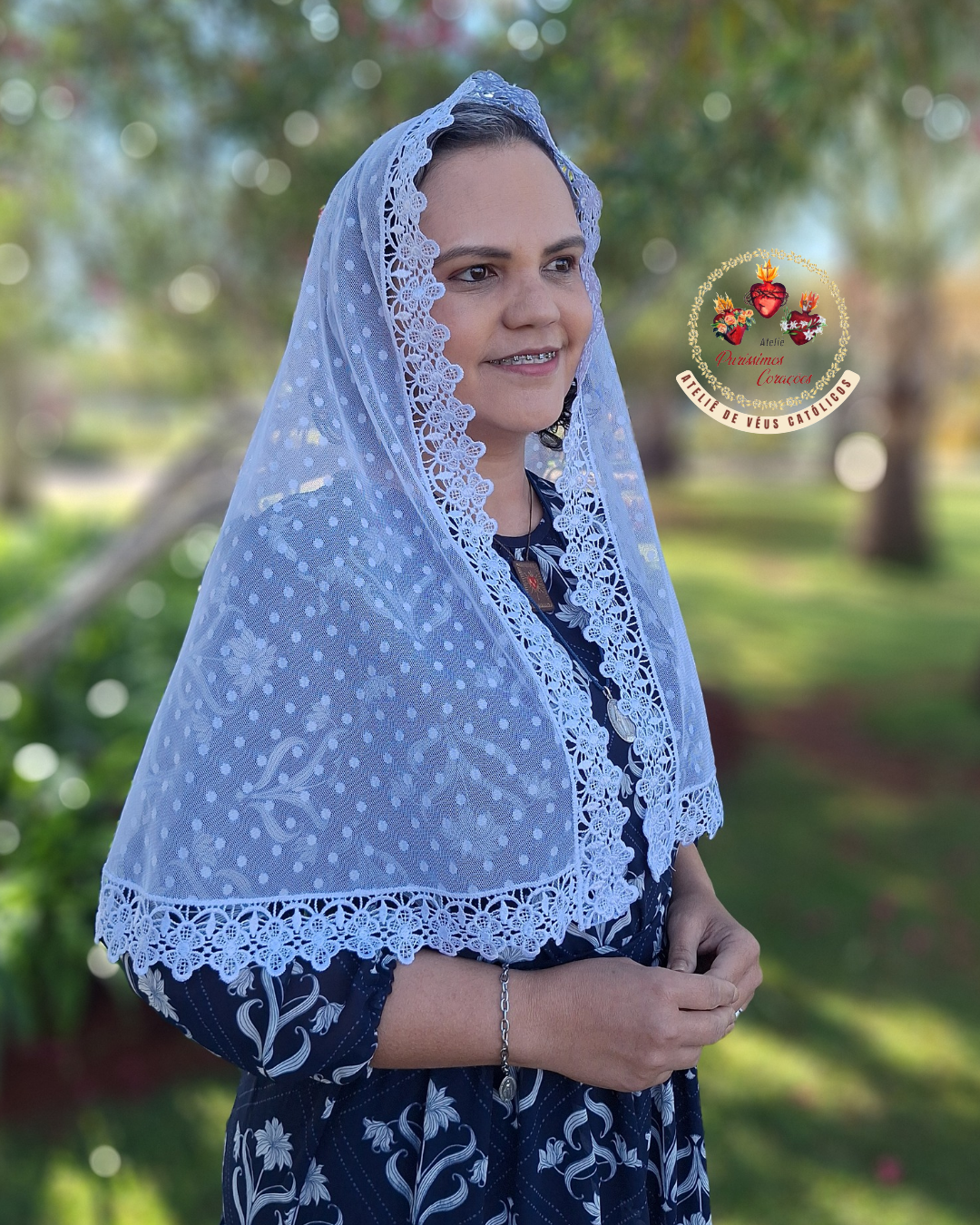 Acompanha presilha para fixar e bolsinha porta véu.